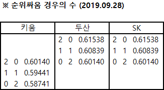 µÎ»ê°ú SKÀÇ ½Â·üÀÌ µ¿·üÀÌ µÉ °æ¿ì µÎ»êÀÇ »ó´ëÀüÀû(9½Â 7ÆÐ)ÀÌ ¾Õ¼¹Ç·Î µÎ»êÀÌ ´õ ³ôÀº ¼øÀ§°¡ µË´Ï´Ù.
